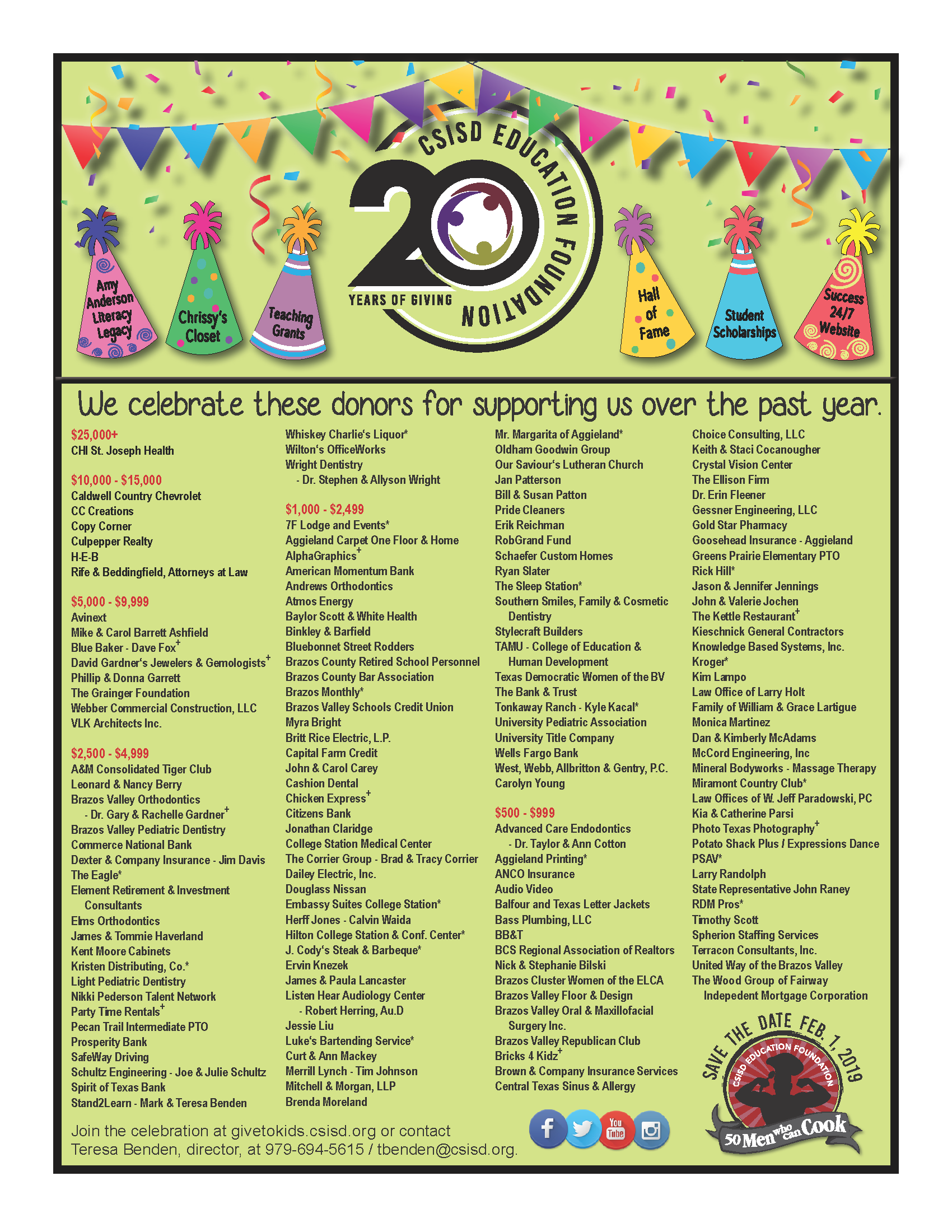 We couldn't do what we do without the generosity of these CSISD Education Foundation Supporters.