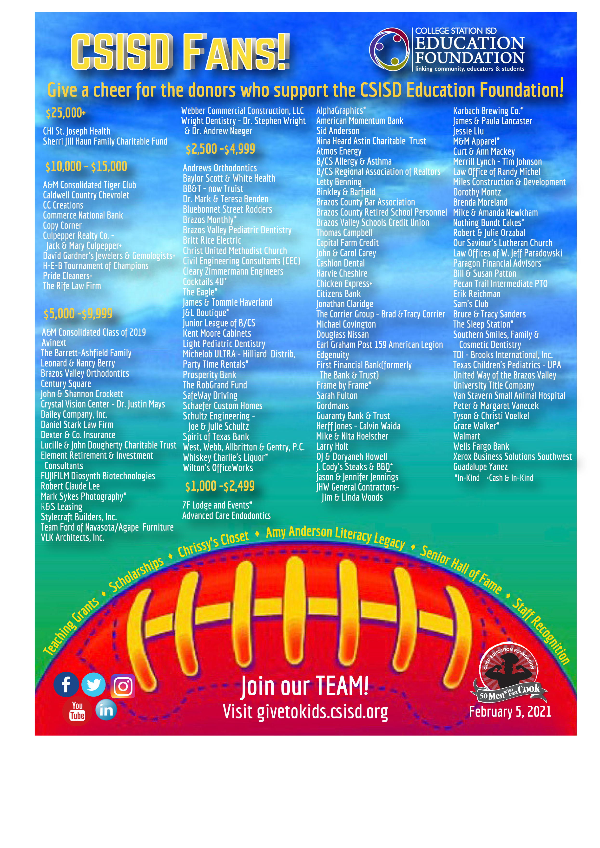 Take a look at the ads that ran in the CSISD football programs listing the Education Foundation's generous donors.
